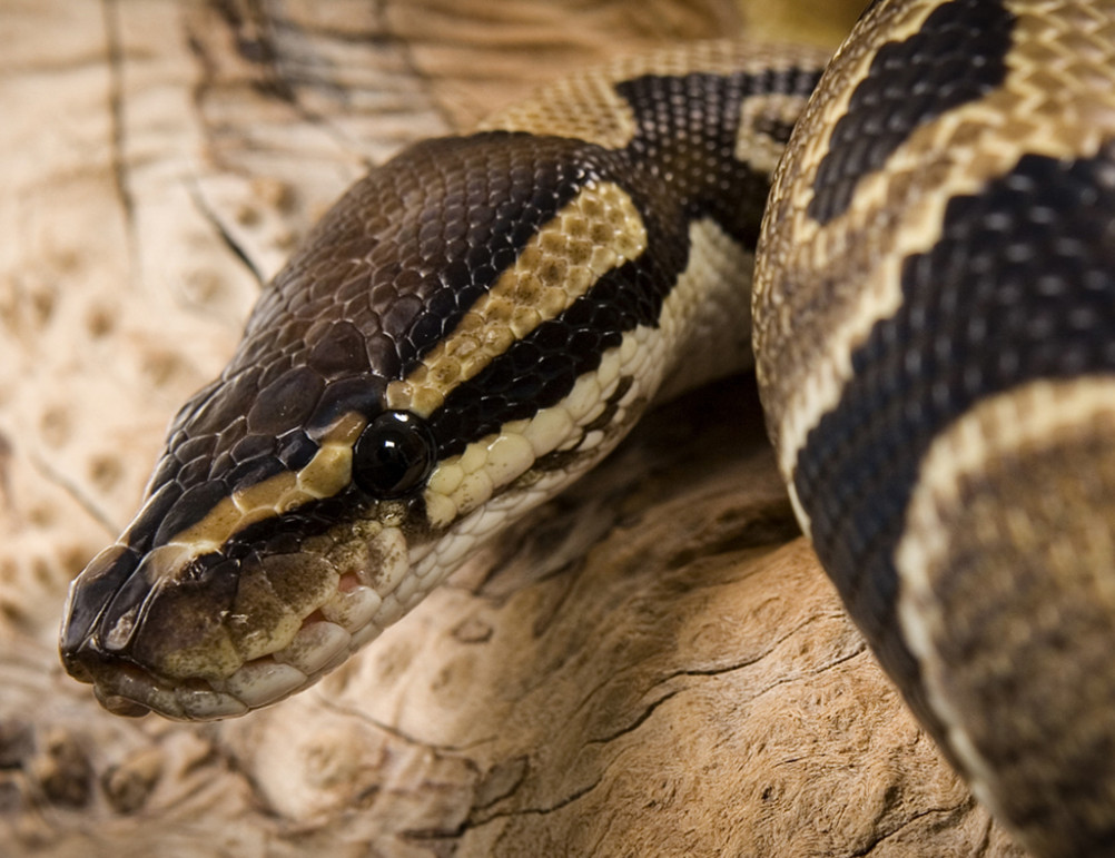 Ball pythons are ambush predators; they will sit and wait for their prey to come to them. Ball Pythons (like other snakes) do not have moveable eyelids. Instead, they have a special clear scale that covers the eyes, making them appear to be always awake. Not having eyelids allows the Ball Python to refrain from blinking and keep its cover when it is camouflaged. Once a prey is close enough, the ball python will grab the prey and wrap tightly around it.
