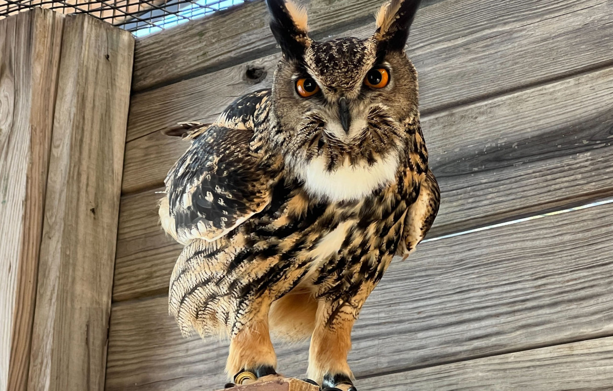 Although the Eurasian eagle owl is not a native bird, it shares many of the same threats as its North American relatives. Often times birds of prey fall victim to debris found on the side of the road. If it’s an apple core, banana peel, or some discarded trash it will attract their prey items which will then attract the bird of prey. Birds of prey have tunnel vision when hunting and will often not see a car coming and can unfortunately end up getting hit. Eurasian eagle owls have also been seen as pests in the past. Humans hunted and poisoned them causing populations to decline. Happily, local governments have begun to increase their protection of these owls, and some reintroduction programs have taken place. One simple way we can help all birds of prey is to dispose of all our trash properly, even natural items like apple cores and banana peels.