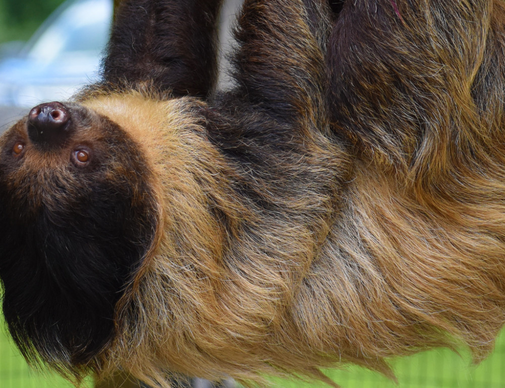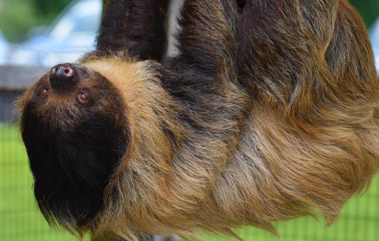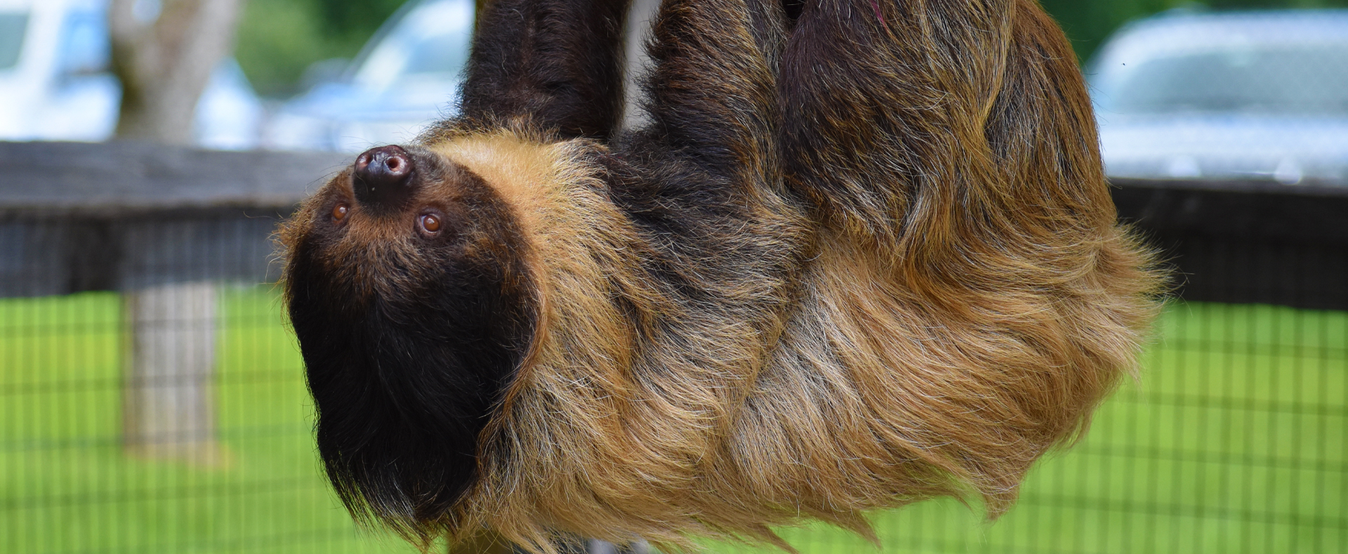 Linnaeus’s two-toed sloths are native to the tropical rainforest canopies in Central and Northern South America. They are arboreal and spend the majority of their time up in the trees. Two-toed sloths can reach up to 21-29 inches long and weigh around 10-20 pounds. The coloration of sloth’s fur varies from gray-brown to beige with a greenish cast due to algae growth, and unlike most animals, their fur grows from their stomach to their back. Sloths are herbivores that eat primarily leaves, flowers, and fruit; they will occasionally eat eggs and insects as well. Breeding season occurs throughout the year with peak season being March-April. After a 10 month gestation period, females will give birth to a single young. The young will stay with their mothers from 9 months – 2 years, after which they will branch off on their own. Females reach maturity at 3 years old, and males at 4-5 years old.
