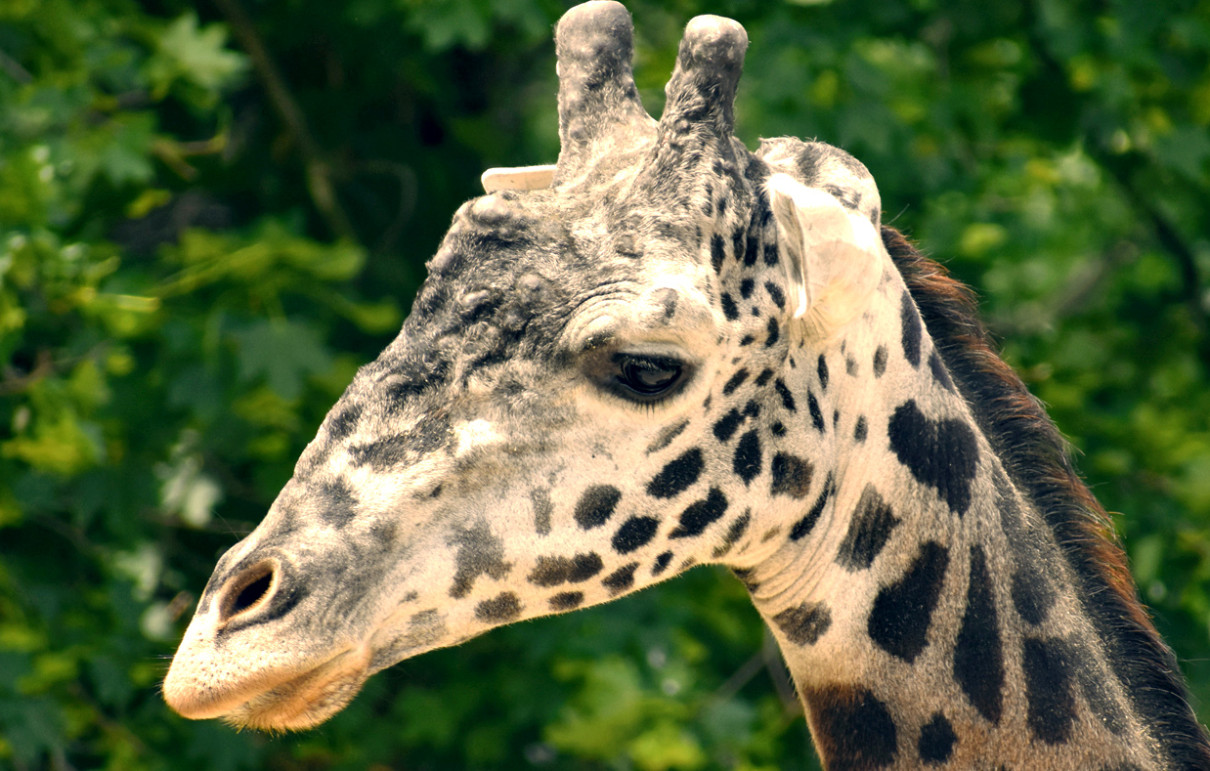 Male Masai giraffe, known as bulls, can reach heights of 17-19ft and weigh between 2000 and 3000lbs. Females, known as cows, are a bit smaller at 16-18ft in height and weigh 1300-2000lbs. They are known for their “maple leaf” like spots. Each spot pattern is unique to that particular giraffe. These spots not only aid in camouflage but also with thermoregulation.